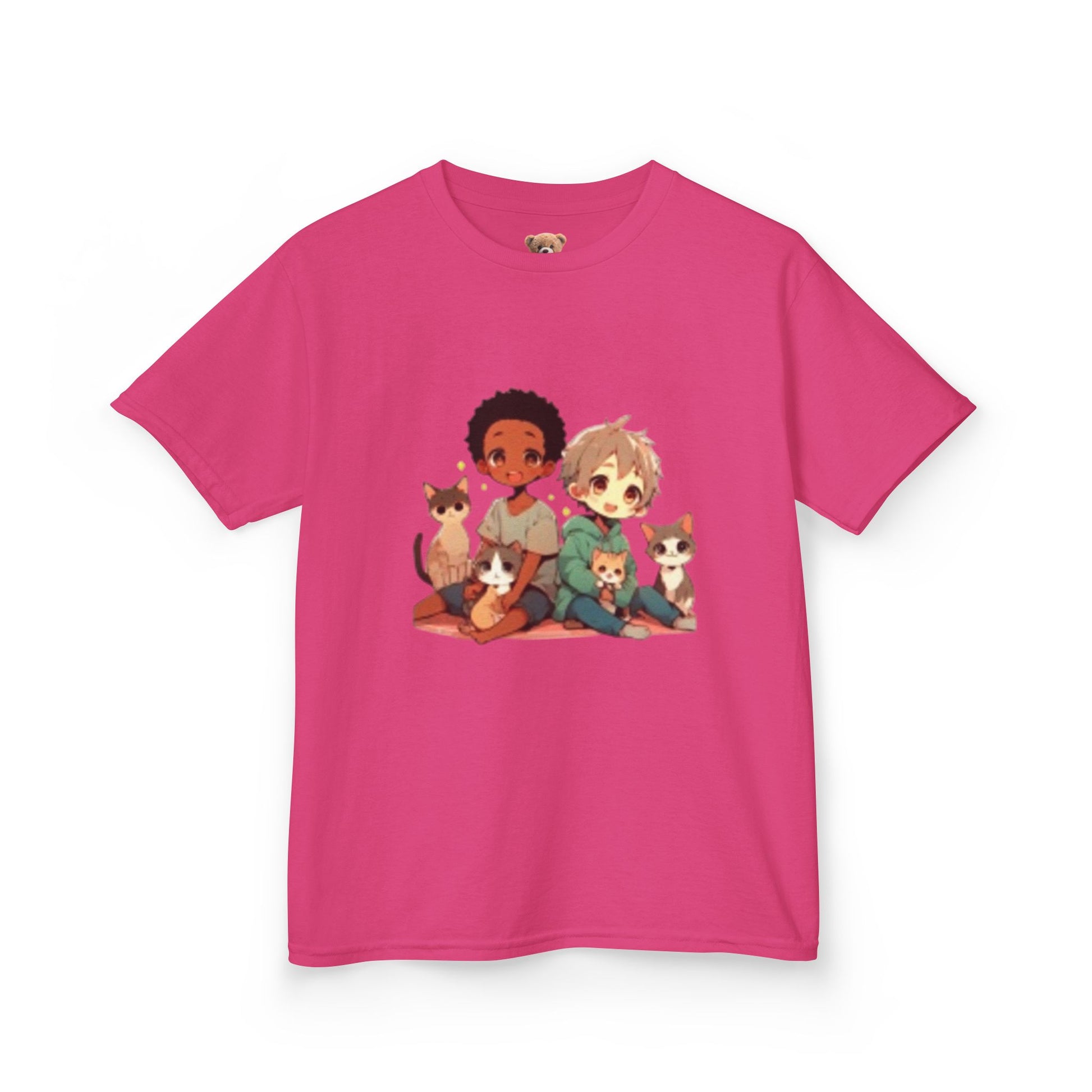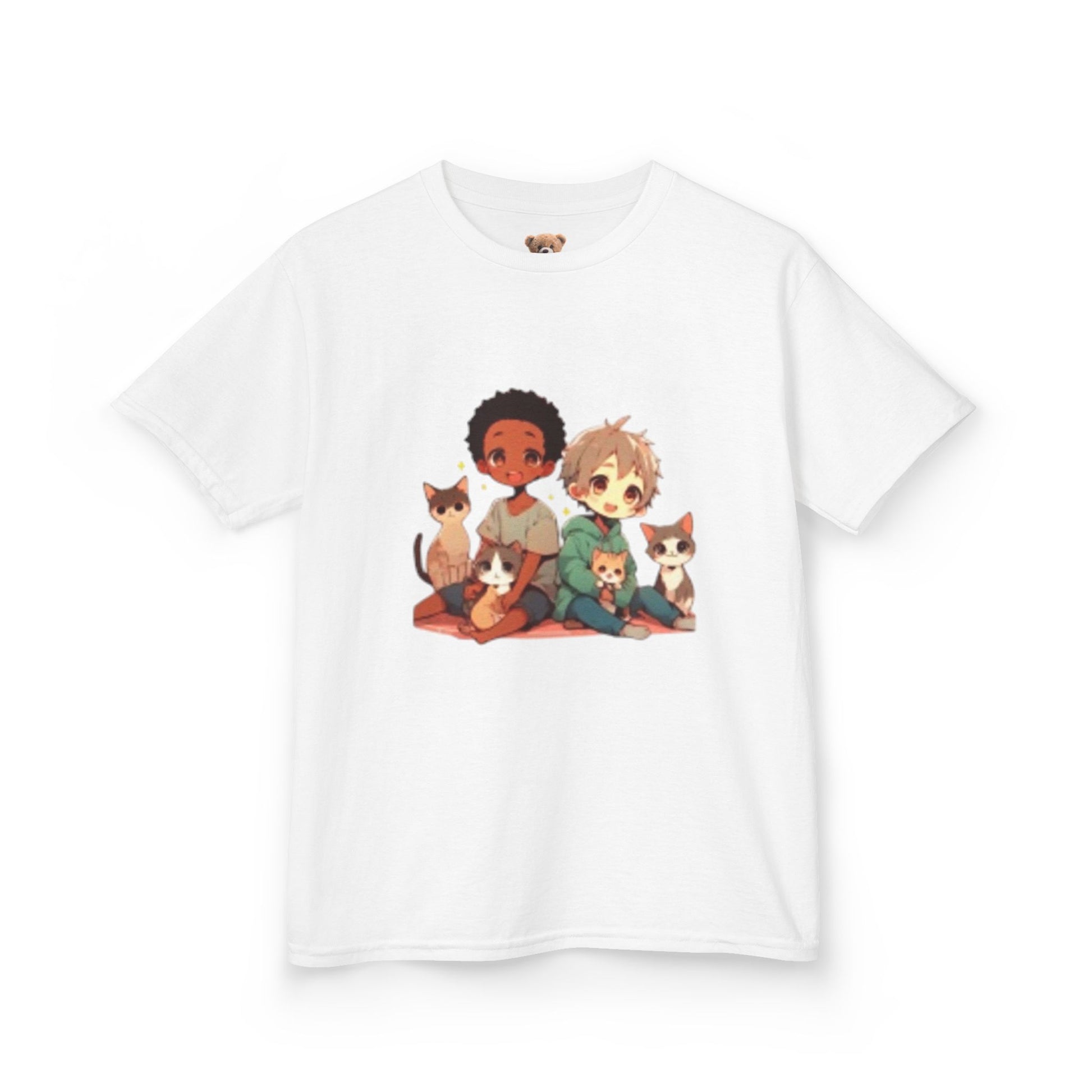 Children with Cats & Heart. Youth T-shirt. Custom Artwork. Comfortable fit. Looking fabulous in USA, Tokyo & France!