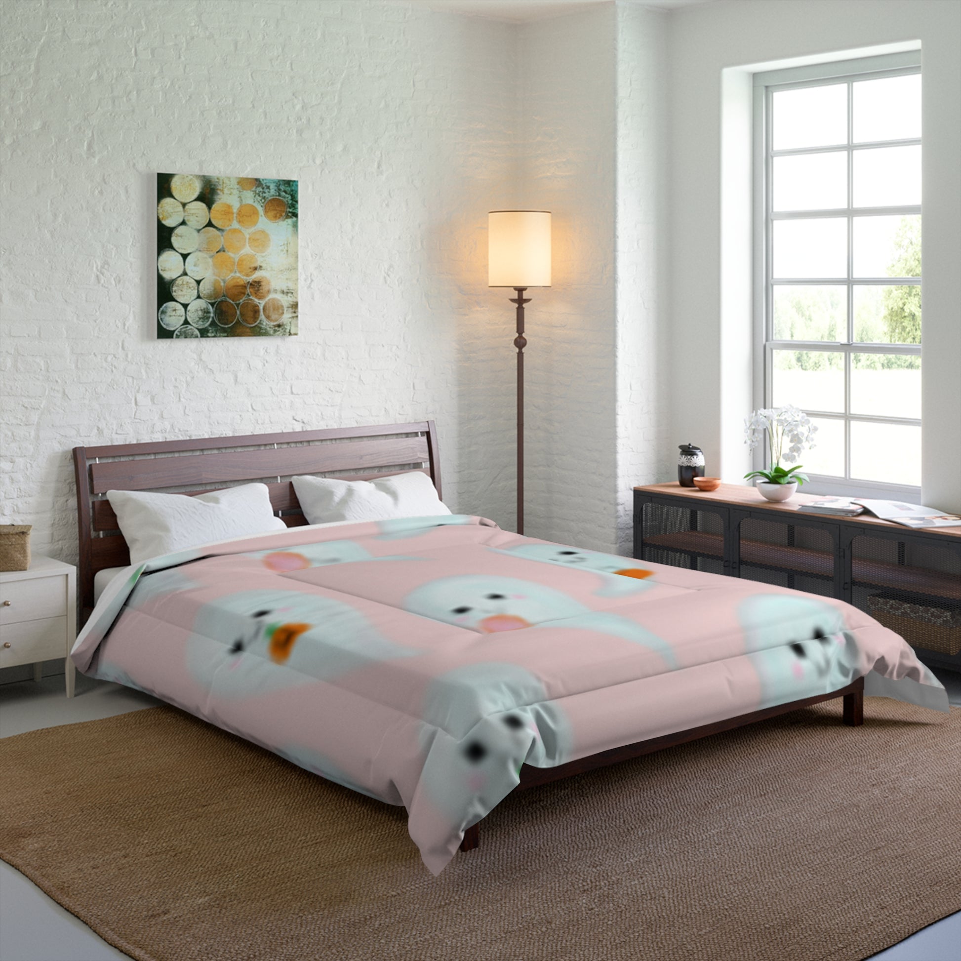 Ghosts on Pink Background Comforter. Custom Artwork. Keeping you warm & cozy. Sleepy Dreams....