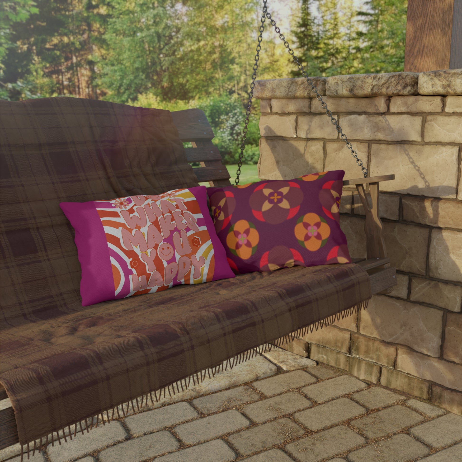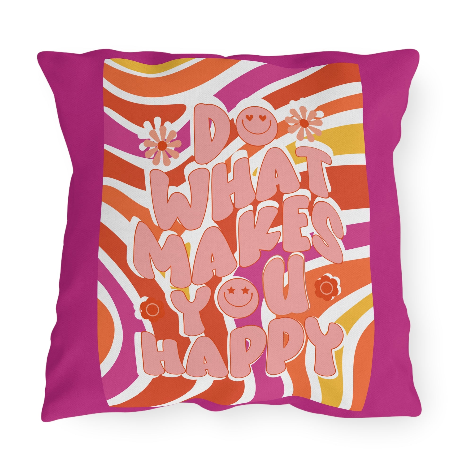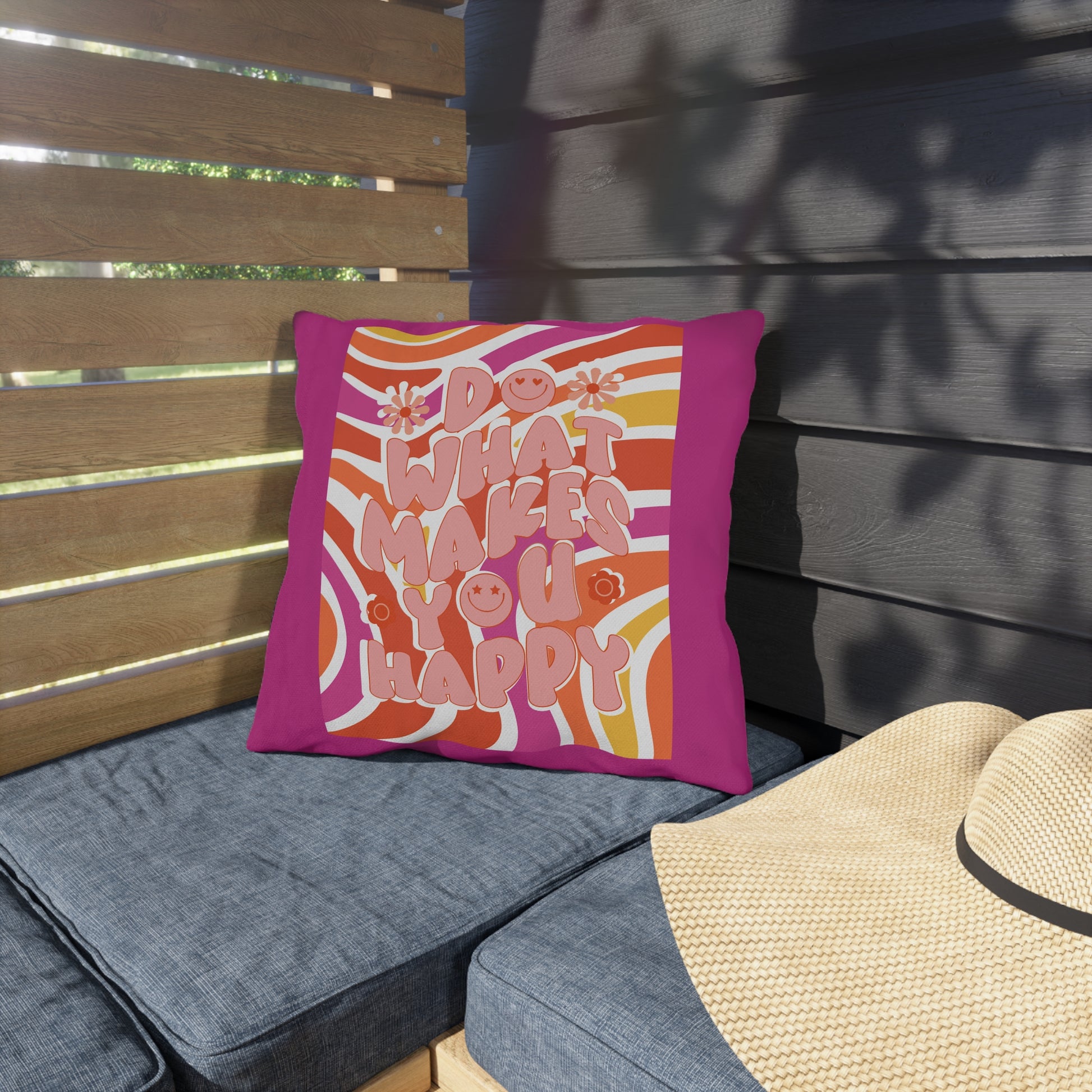 Haz lo que te haga feliz. Cojines para exteriores. Obras de arte personalizadas. Estilo único y caprichoso. Colores vivos. Los cojines son geniales para tener en el porche trasero. Son suaves y cómodos. Me relajo todo el día. Disfruto de mi jardín. Me recuesto sobre un cojín. ¡Definitivamente es un buen día!
