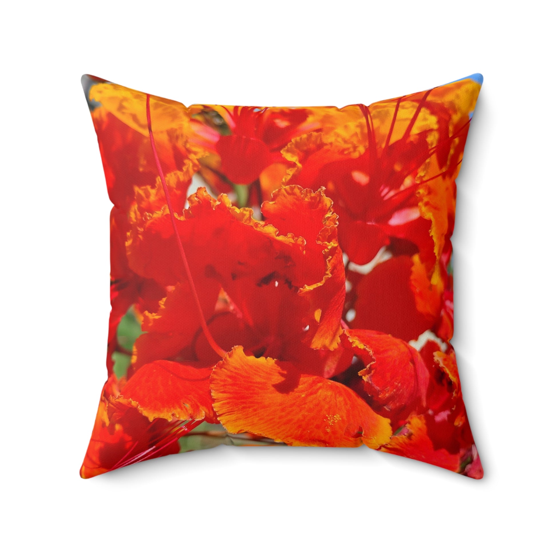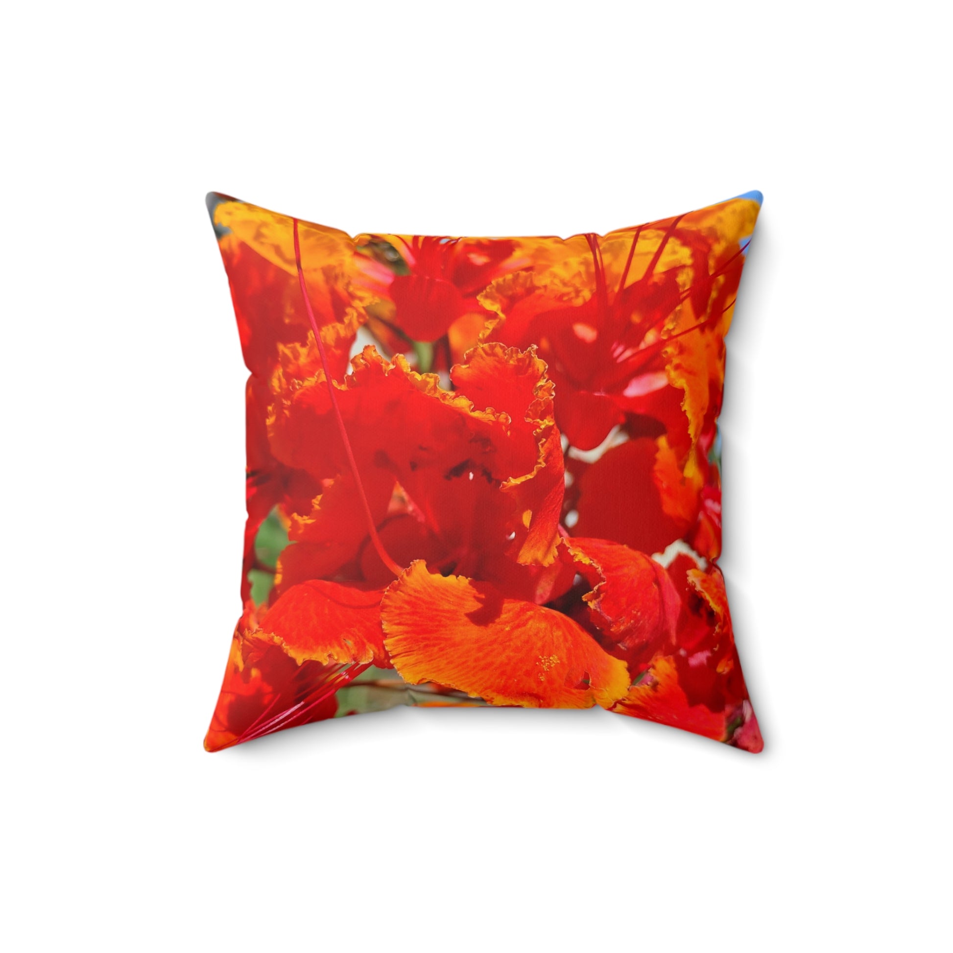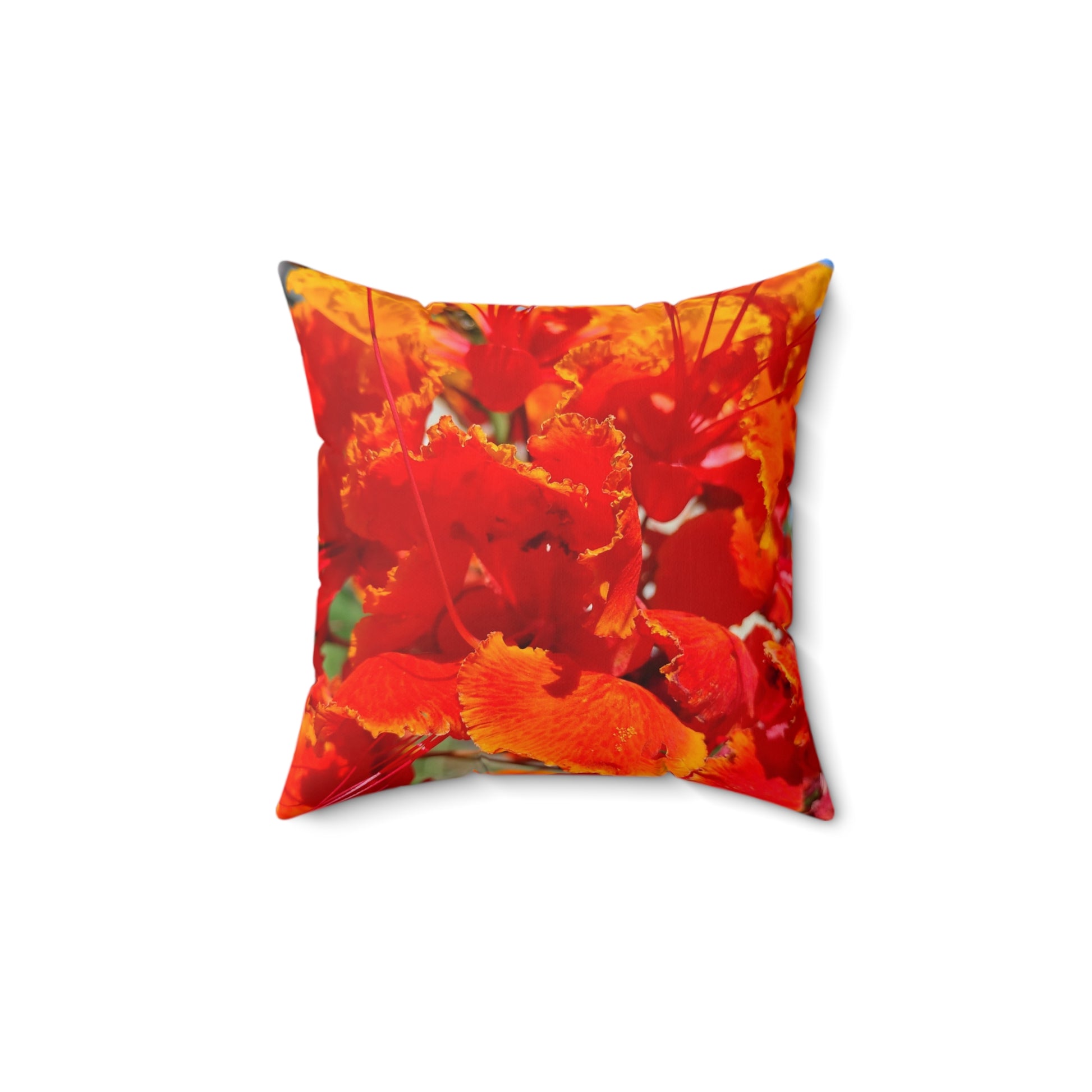 Vibrant Orange Flowers Square Pillow. Custom Artwork. Soft against your skin. Looks Fabuloua in every room. Wonderful Gift!